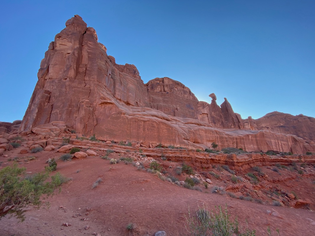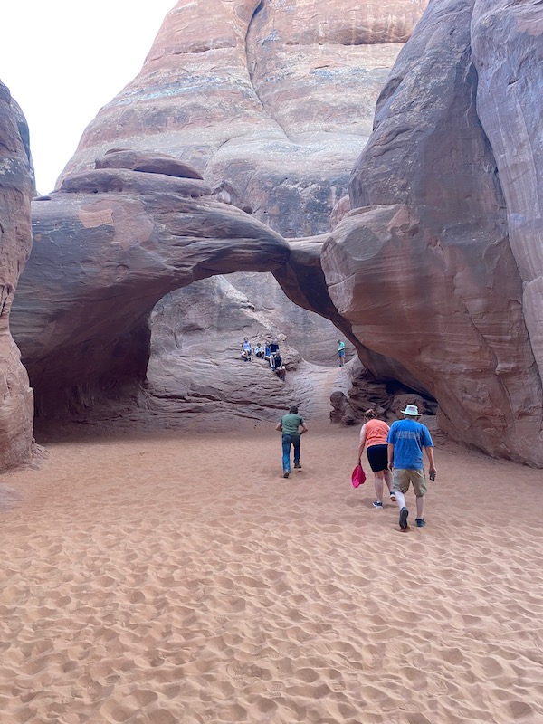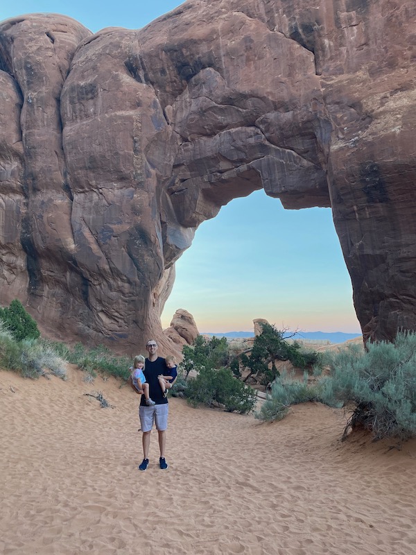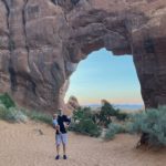 We packed up from our front dwelling Airbnb home and headed to Costco for some cheaper gas and started towards the mountains. Highway 70 took us up and over the Rockies and we got up to nearly 11,000 feet and the car definitely was feeling it, it struggled to make it up the road but after making it over the pass it was all down hill from there and we were able to save about 100 miles worth of gas as we descended to the desert. It was a nice and scenic drive through the mountains and passing some awesome ski towns. Once we made it to Grand Junction we stopped and got some food from QDOBA Mexican food chain. It was pretty good as it was our first time trying it. I let Alyssa drive the rest of the way to Moab. The temps kept rising but we stayed cool inside the van. We made it into Moab and we wanted to eat some food. We stopped at a parking lot with lots of food trucks to choose some food. Alyssa got a strange tasting smoothie that was sweet and a little sour too. I chose to get a snow cone with a scoop of ice cream. It was good for the heat but they were missing a flavor that made it not taste as good as it could have been. After that we drove to our Airbnb that was south of Moab. It was nice and cozy but didnt have AC, it was okay because it cooled down to the low 80's and felt really nice. It was a house that had an upper and a lower living area and we were on the top floor. Once Taylor, Alan, and Tammy arrived we unpacked and headed out to Arches National Park while the air was cooling down. We did a couple hikes, one to an arch between some cool rocks and was kinda hidden. We stopped quite a few times to take some pics of some cool rocks, arches, pillars and other things but the sun was going down quickly and we made our way back to the Airbnb but not before stopping at the grocery store and picking up some food to make some dinner.
