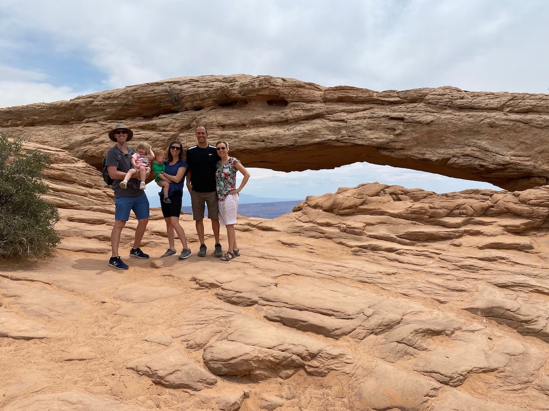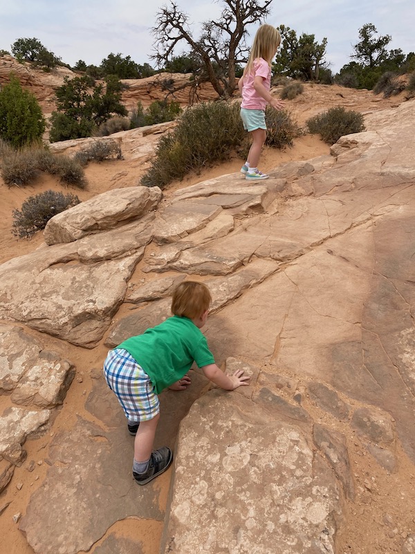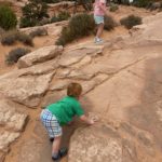 This day we decided to go to Canyonlands and it was a great day to go. It took about an hour and a half to get into the park. 45 minutes of that was waiting in line to actually get in the park and we are pretty sure that it was because they closed arches and forced everyone else to go to Canyonlands. We started off by going to the visitor center and buying our magnet and then on the way we went to the Mesa Arch that is apparently a really popular arch that sits on the edge of a cliff. We then to the Grand view where it overlooks the whole area and quite an amazing view. It felt like you were on the top of the world with cliffs all around, it made us a little nervous having the kids run around and climb all over the rocks. They do have a mile hike around the rim but we didn't feel comfortable with the kids so we didn't do it. We then made our way to a picnic area and Clark was not a happy camper. He wanted to run around and climb on rocks and doing his own thing. Instead we kept him in the car where he eventually gave up after we put a movie on the entertainment screen. I was also able to take a nap since we didn't get out of the car. After lunch we continued on and made our way to Whale Rock where Alyssa, Alan, Taylor and I did a short fun hike up the Whale Rock. It was pretty big and Taylor just wanted to run with the other kids that were on the trail so we let her go for a little bit until she fell and didn't want to walk any more. It was quite the hike with all these kids that wanted to push over all the stacked rocks. Once back we continued driving and found we saw most everything we could with our on-road vehicles, maybe next time we will go with some off-road vehicles and go on more adventurous trails. We made it back to Moab and went to find some food. We ate dinner a little early and enjoyed eating at the Broken Oar. Alyssa and I had eaten there before on a previous road trip and my cousins worked there while they went to high school. After eating there we drove down the road and got some ice cream. We tried to get some from this Coffee shop but they closed at 5pm so we went down the road and saw many other eating ice cream and found they all got it from the Spoke on Center. It was delicious and made us happy. Overall it was a good day with the exception of the kids driving us a little crazy.